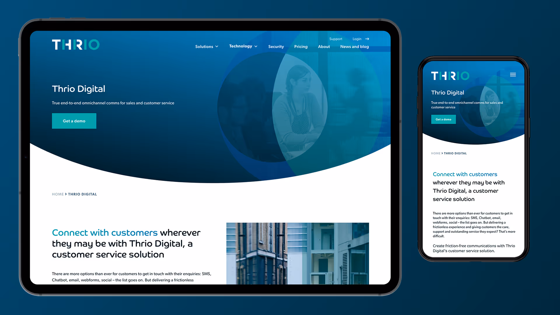 Thrio's goal is to provide a joined-up, friction-free customer experience across a fast-changing, multichannel communications landscape, as well as ensuring streamlined, well-orchestrated processes that empower agents. They wanted to reinvigorate the brand to reflect the company’s growth. They needed a strong brand and a confident proposition and tone of voice to represent Thrio’s current and future success.